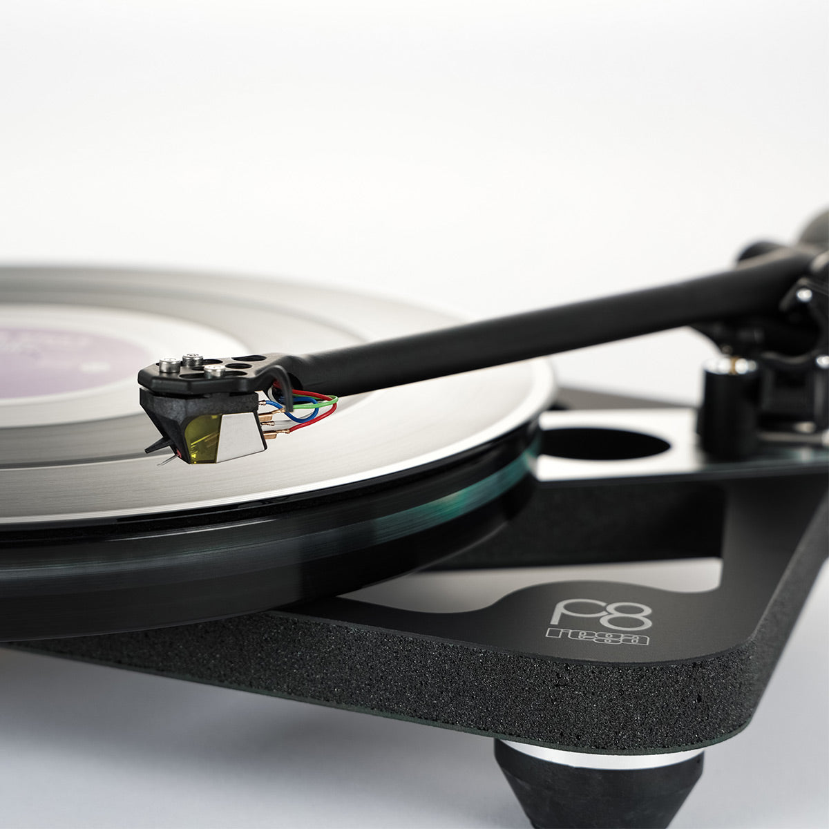 The Planar 8 is the second Rega turntable constructed using Rega’s latest ultra-lightweight Tancast 8 polyurethane foam core (a material developed for the aerospace industry). This material is sandwiched between two layers of HPL (high-pressure laminate). HPL is exceptionally thin and extremely rigid. This new construction makes the new Planar 8 skeletal plinth 30% lighter than the original RP8 while offering increased rigidity over the previous model.
